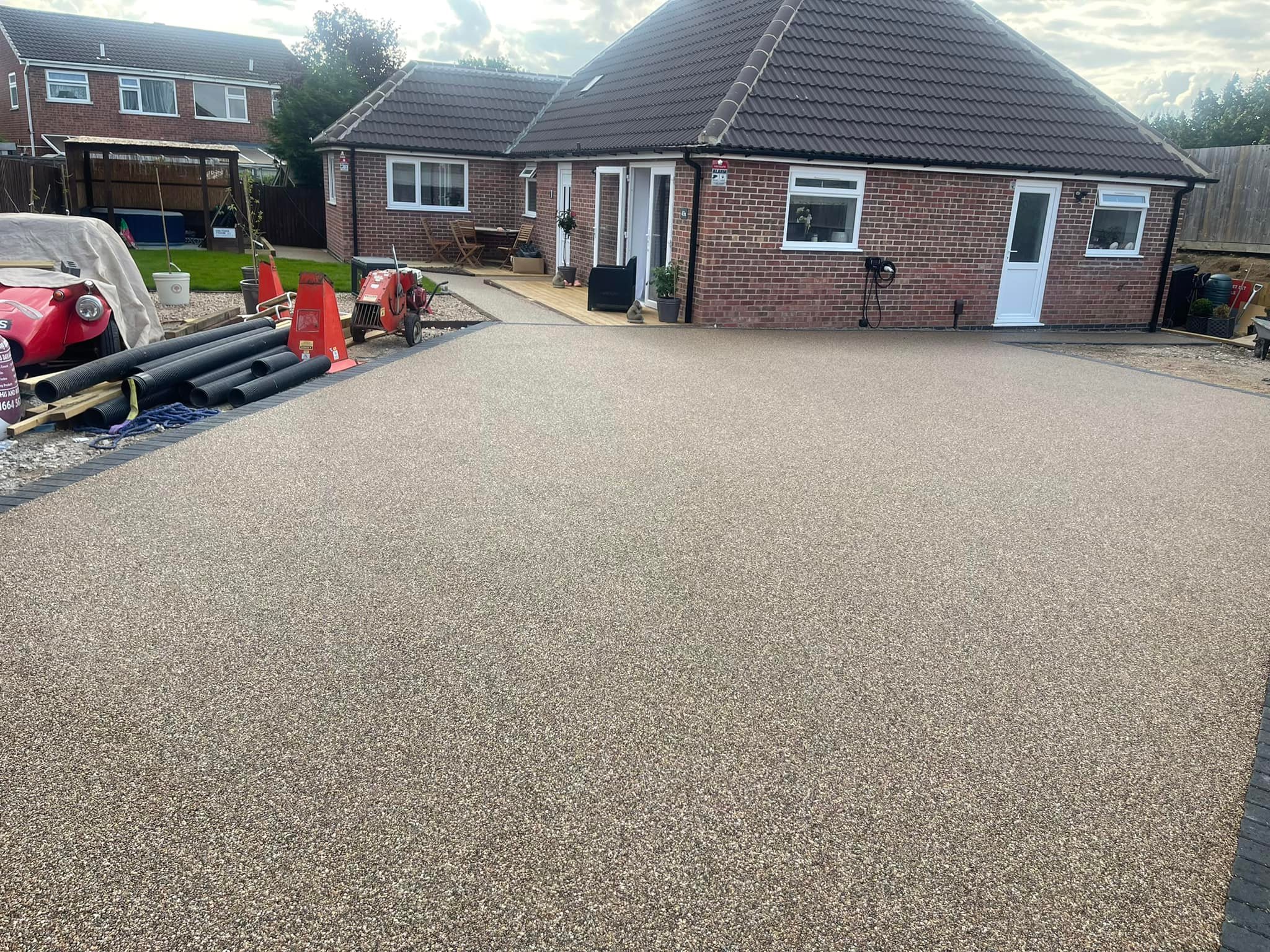 Professional resin bound driveway installation in Worksop, delivering strong, attractive, and low-maintenance surfaces that elevate your property with a sleek, long-lasting finish.